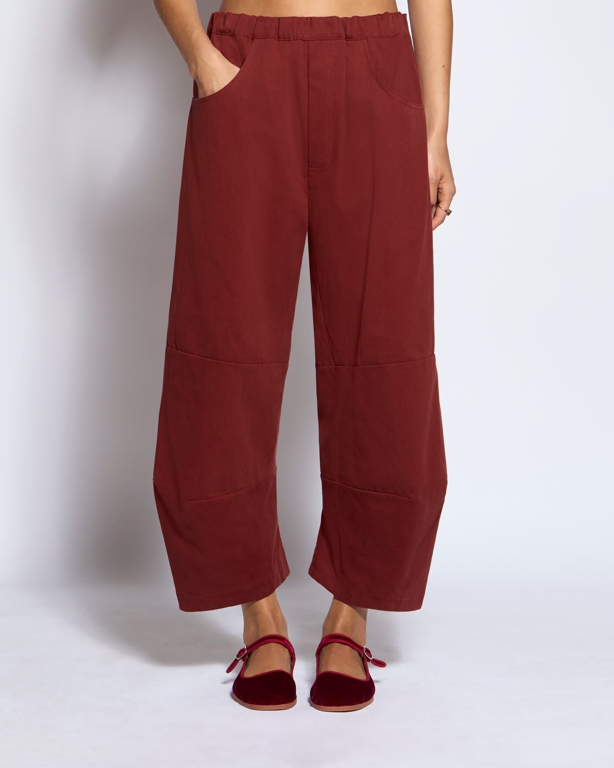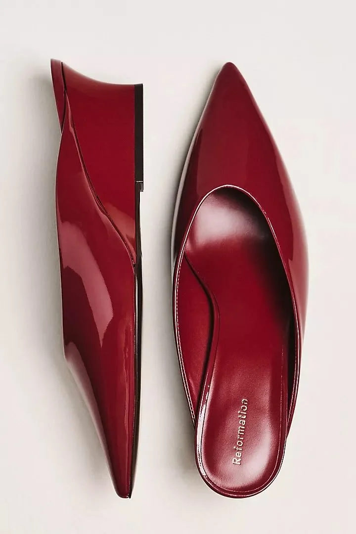 Stripes are a must have for you, especially because they pair nicely with all of your prints. This relaxed version from Sezanne feels approachable and polished and we know that you love dusty blue…. I’m obsessed with this sweater for you. Feel free to wear a tank top and regular bra underneath if you like. In this example, I like it layered over the striped top! Get ready for some super fun pants! These long barrel shaped pants are flattering and unexpected. They’ll show off your legs, minimize your stomach and be useful throughout the year. I noticed red shoes popping up on your board and I’m all for it! You’ve got mules at home so let’s keep that trend going with a fresh pair that feels polished, luxurious and unique. They’ll also be easy to integrate into a wide array of looks.