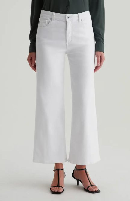 You love a good batwing top and they are flattering for your frame. This one with navy blue stripes is just right to balance these functional and flattering ivory wide leg jeans from Good American. They are a great fit for your figure. You’ll find that there are pieces that will work better with these than the white jeans and visa versa.